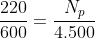 Tegangan premier, Vp = 220 V